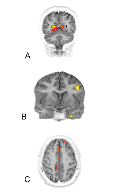 Figura 4c - Ativação do giro cingular em paciente obsessivo compulsivo durante uma crise de compulsão suprimida voluntariamente.